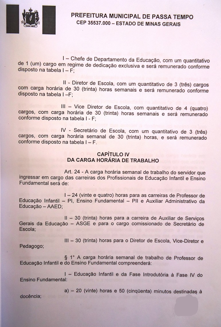 Que estabelece o plano de cargos e vencimentos, bem como as carreiras dos profissionais da educação do município de Passa Tempo e dá outras providências.