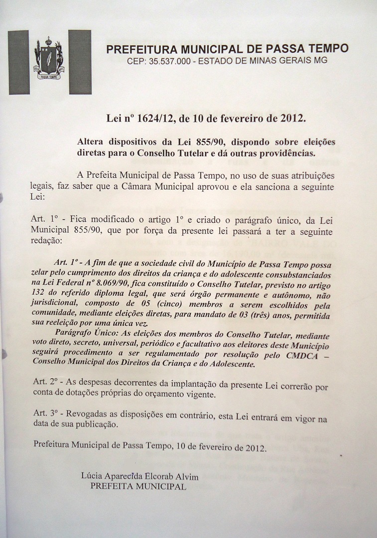 Altera dispositivos da Lei 855/90, dispondo sobre eleições diretas para Conselho Tutelar e dá outras providências.