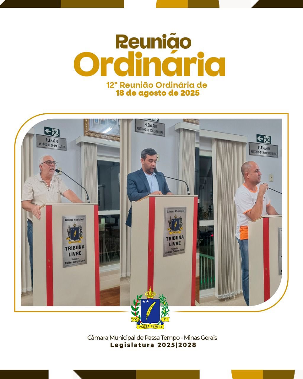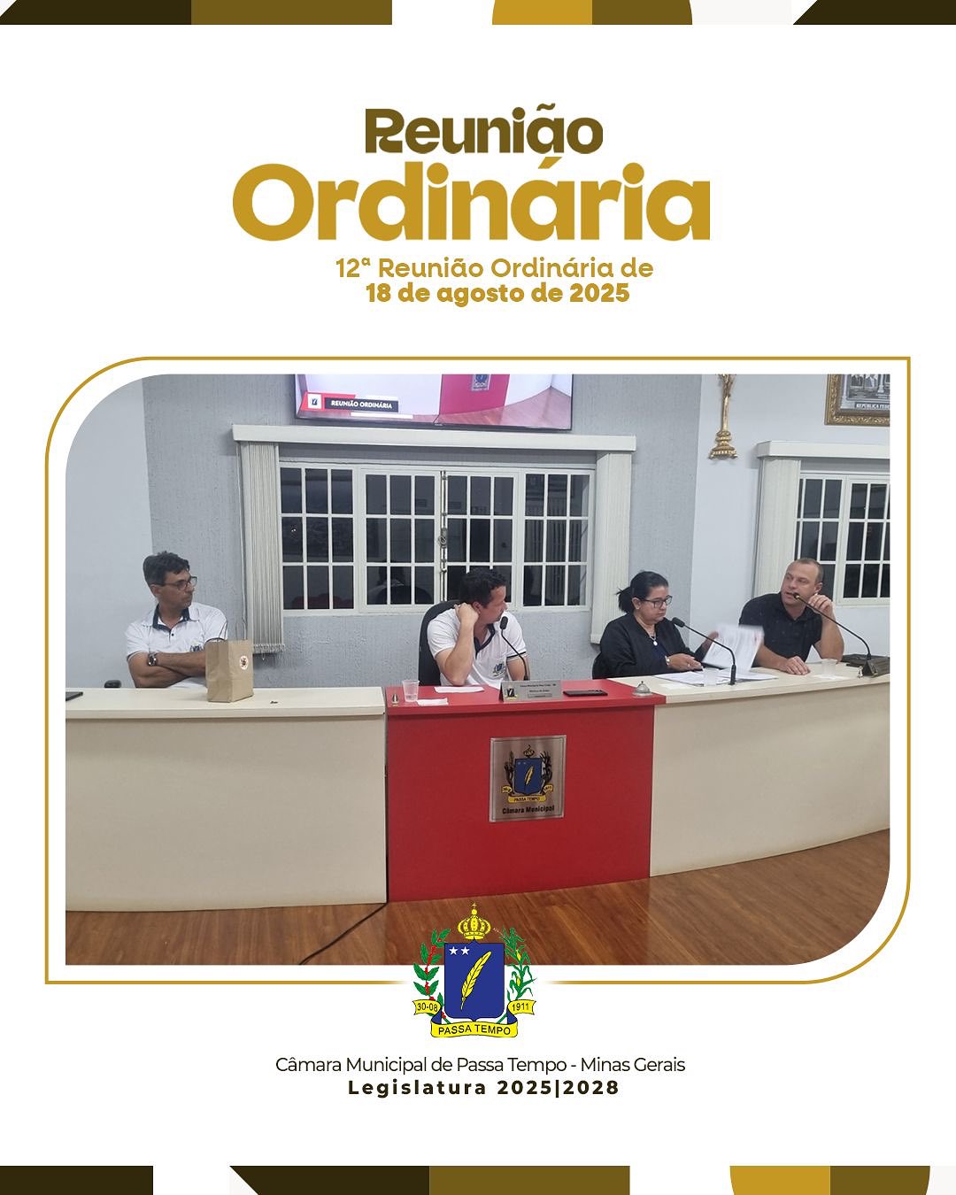A Câmara Municipal de Passa Tempo realizou sua 12ª Reunião Ordinária de 2025, presidida pelo Vereador Matheus Alves e com a presença de todos os vereadores.