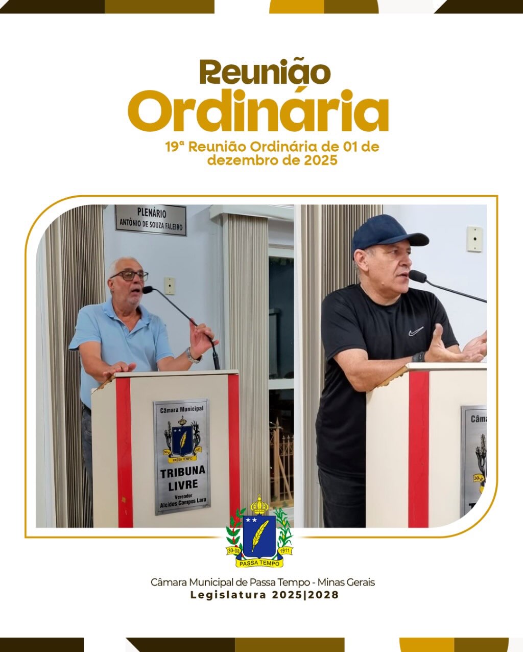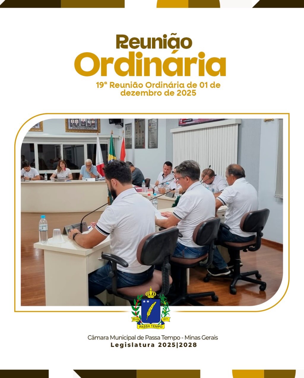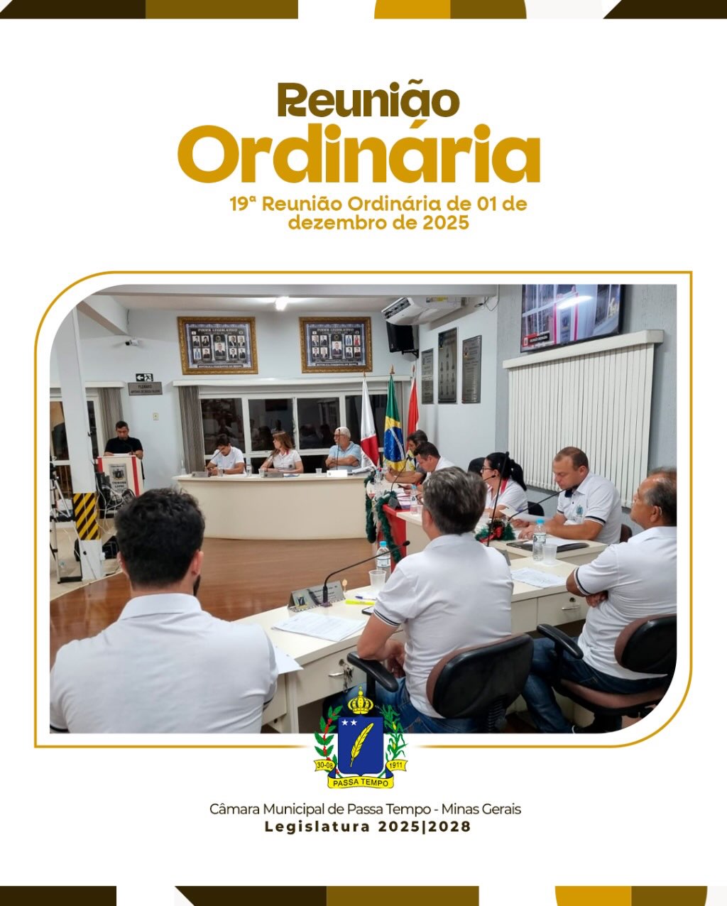 A Câmara Municipal de Passa Tempo realizou no dia 1º de dezembro de 2025 a 19ª Reunião Ordinária, com todos os vereadores presentes.